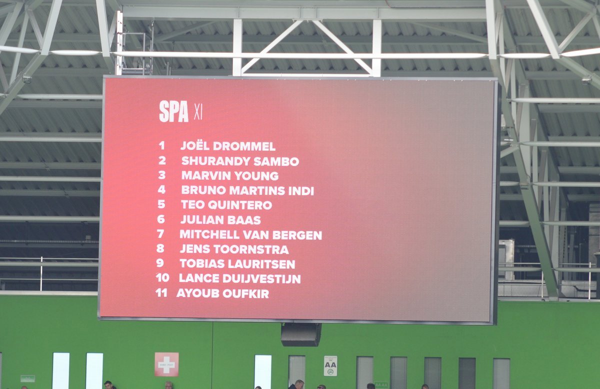 Deze supporters zagen dat trainer Maurice Steijn gekozen had voor twee andere middenvelders ten opzichte van de vorige speelronde. Pelle Clement en Joshua Kitolano werden vervangen door Jens Toornstra en Lance Duijvestijn. De overige negen namen waren hetzelfde.